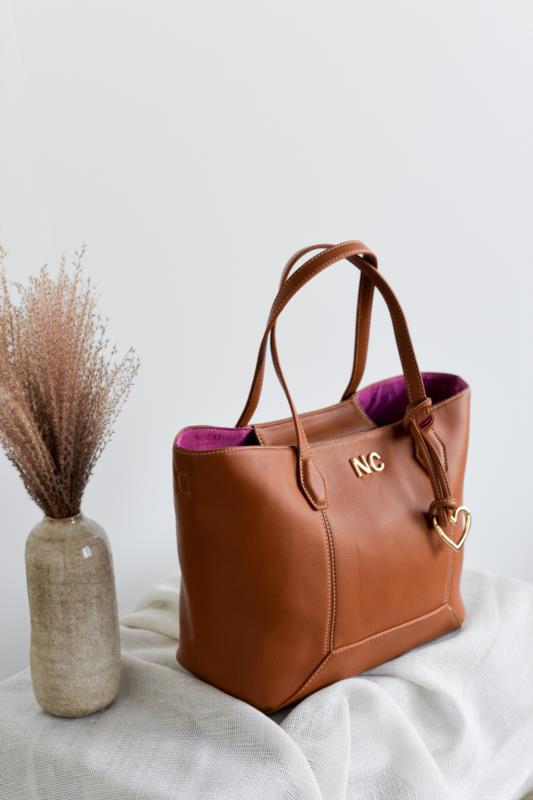 Bolso shopper camel pespuntes corazón