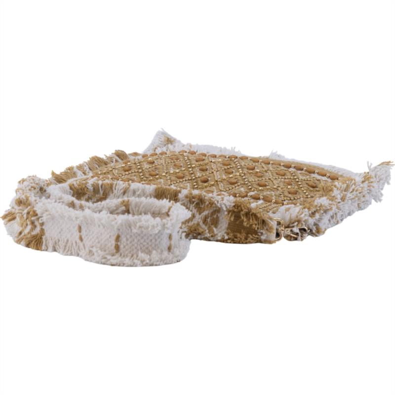Clutch Savanah Oro de Simo Sastre, un bolso artesanal con detalles dorados y diseño boho-chic. Ligero, llamativo y perfecto para elevar cualquier look especial.