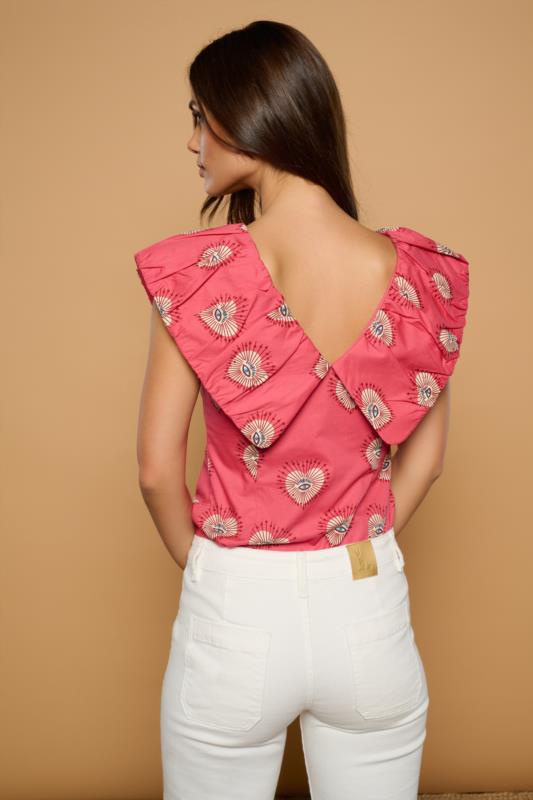 Rosa, bordado y con cuello que enamora.