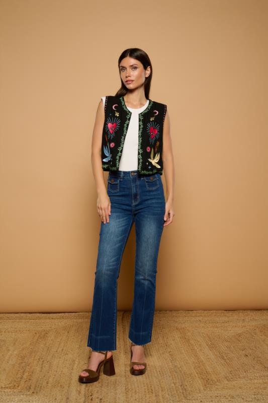 Un chaleco bordado que convierte cualquier look en pura magia y personalidad.