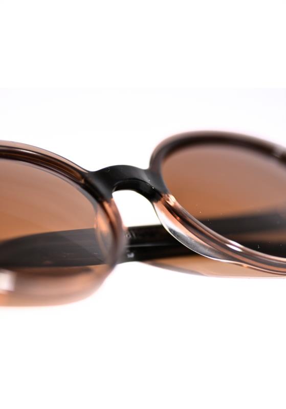 El diseño combina el marrón cálido de los cristales con toques de color en la montura, creando un contraste equilibrado y favorecedor.