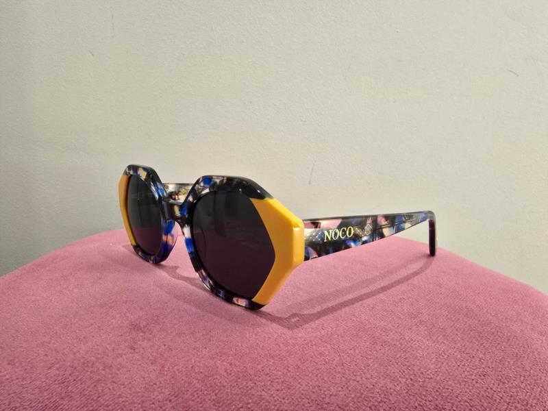 Las gafas de sol Venecia NOCO presentan una montura de pasta con forma hexagonal, de líneas bien definidas y estructura moderna.