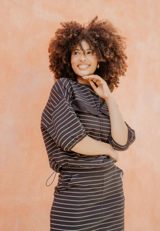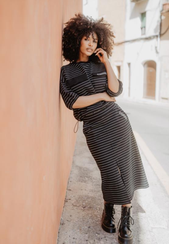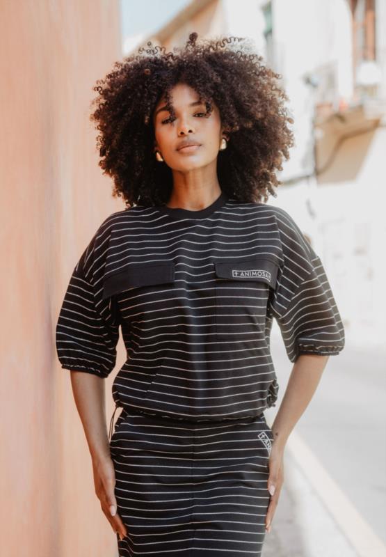 Sudadera de rayas horizontales, parte de la línea inspirada en Juana Inés de la Cruz