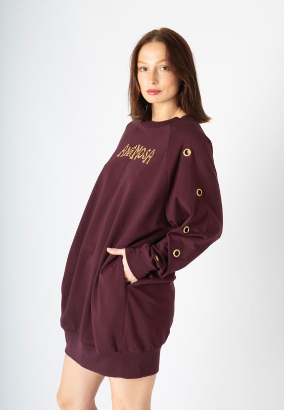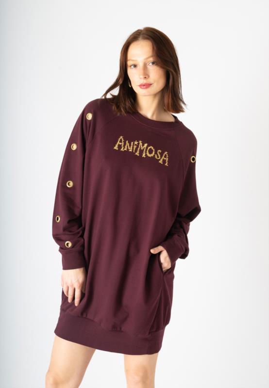 Vestido con la palabra Animosa formada por diminutas estrellas. Queremos hacerte ver que juntas somos más fuertes. Como las estrellas, aparentemente puntitos luminosos en la grandeza del universo.