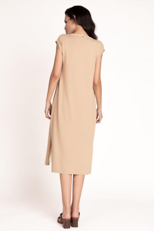 Luce elegante y con estilo con nuestro vestido VALENTINA en color blanco con capa beige. Este vestido sin mangas presenta una capa exterior beige claro con un diseño abierto en la parte delantera, lo que le da un toque único y sofisticado. El ribete de la capa exterior añade un detalle delicado que resalta el conjunto. El vestido llega hasta la mitad de la pantorrilla y tiene aberturas en los costados para mayor comodidad y movimiento. Completa el look con unas sandalias marrones con tiras para un estilo perfecto.